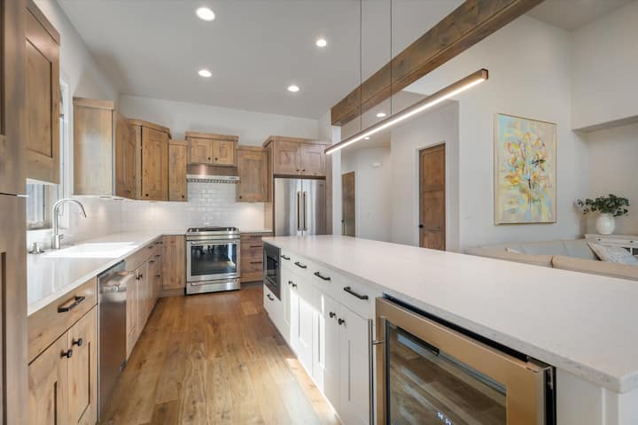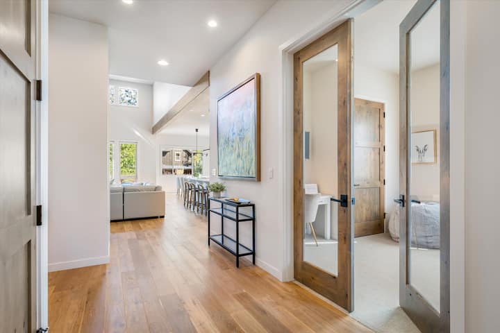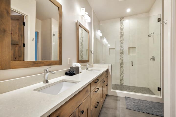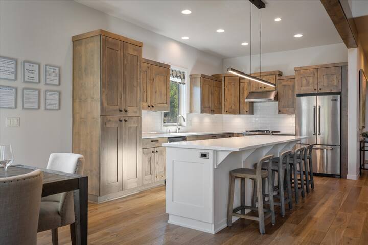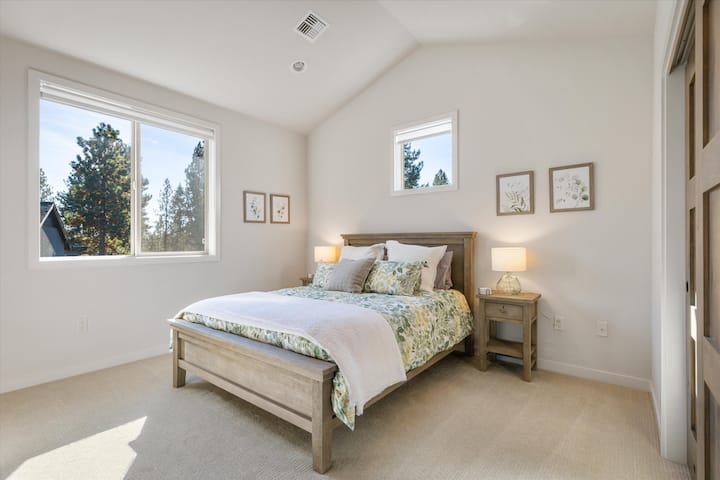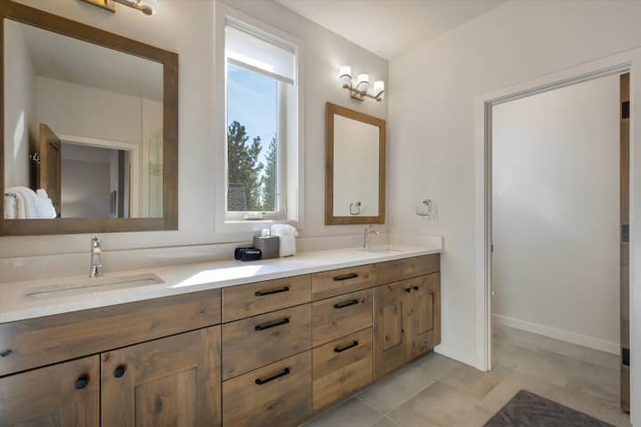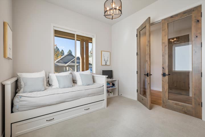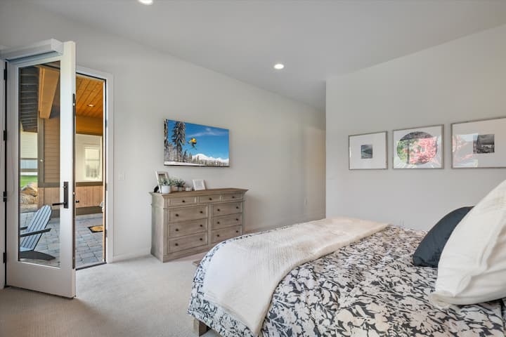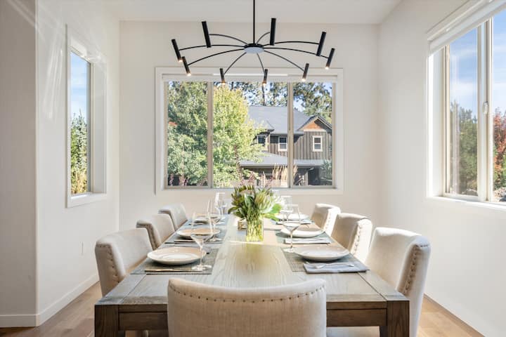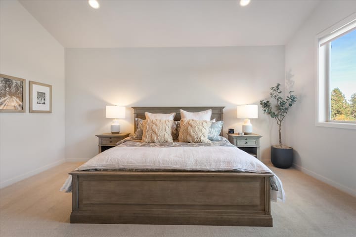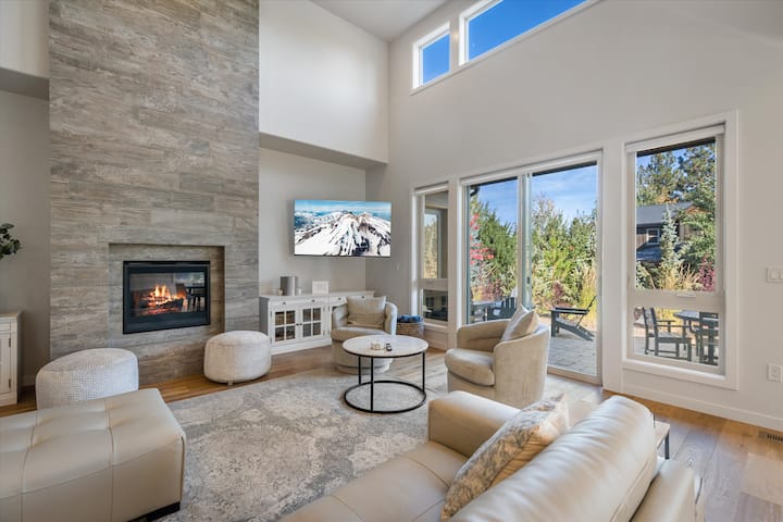 Nestled within the Deschutes National Forest, the property places you closer to Mt. Bachelor than any other homes in the area, while still just a quick ten-minute drive to downtown Bend. After a day of skiing, hiking, or exploring, unwind on the private outdoor patio featuring a soothing hot tub, cozy fire table, and al fresco dining space—the ideal backdrop for your Bend getaway.