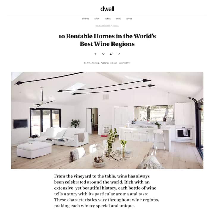 Dwell Magazine calls Thornsberry House one of “10 rentable homes in the worlds best Wine regions”