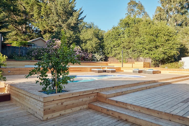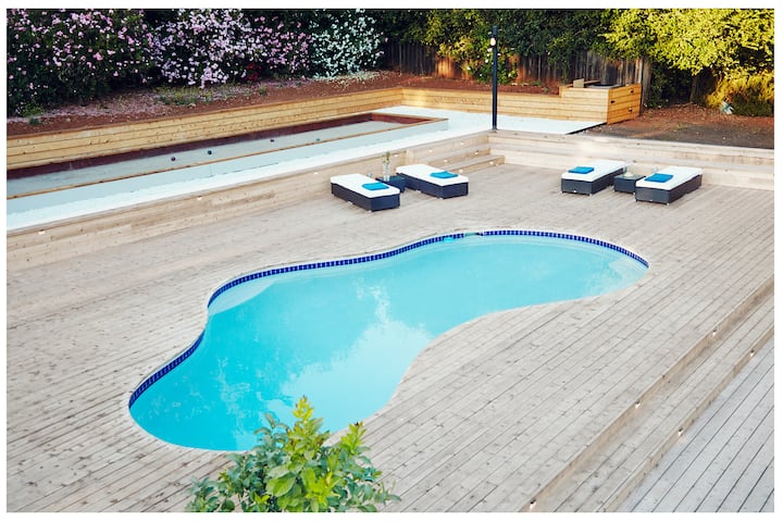 The property, which will be all yours, has a refreshing outdoor shower, pool, bocce and a deck.